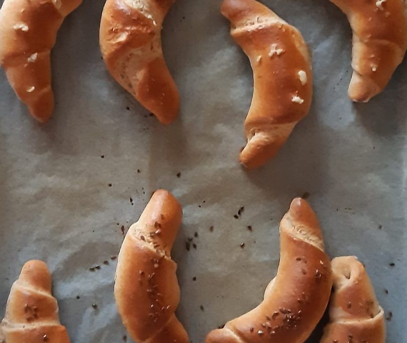 Hozzávalók: 25 dkg teljes kiőrlésű liszt 25 dkg finom liszt 2 dkg élesztő 2 tojássárgája 350 ml dl tej (picit lehet több is, annyi kell, hogy a tészta jól eldolgozható